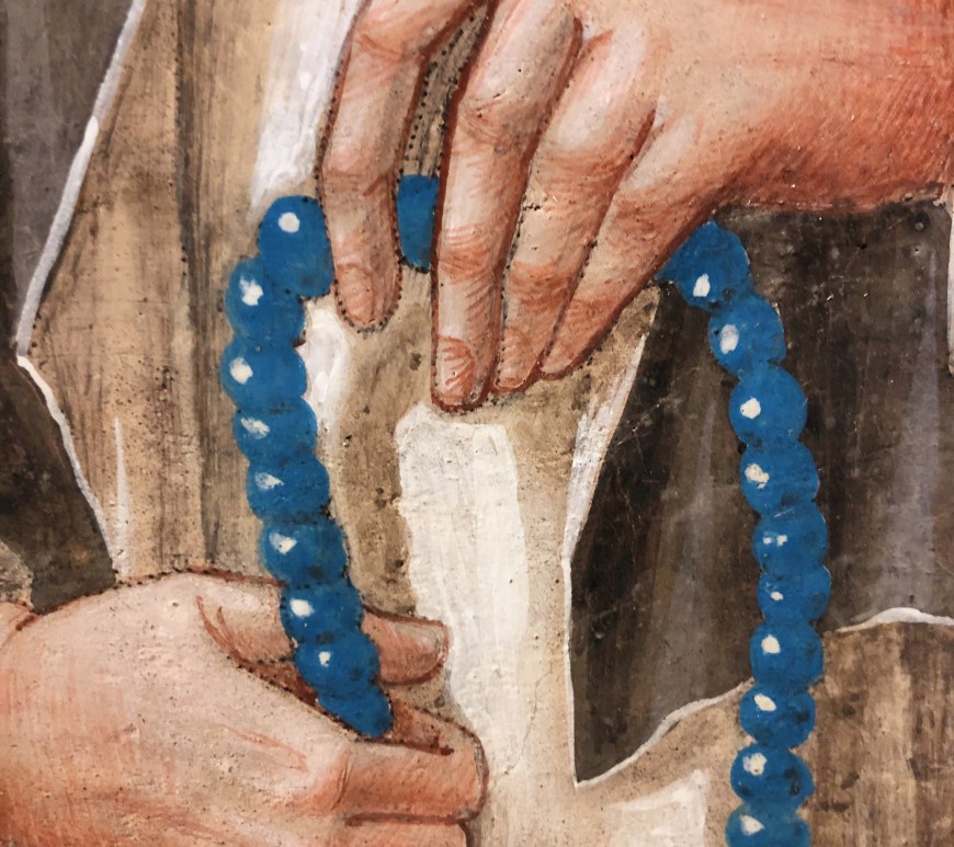 Cosa si nota di “strano” in questo dettaglio? Cosa sono quei puntini neri sul contorno delle mani in primo piano? Dal Cinquecento in avanti la maggior parte dei disegni preparatori viene realizzata nella bottega dell’artista su carta di piccola dimensione. Con un disegno di dimensioni così ridotte però, non era facile realizzare un intero ciclo di affreschi, soprattutto dovendo affidare la realizzazione a più pittori … Continua a leggere La tecnica dello spolvero